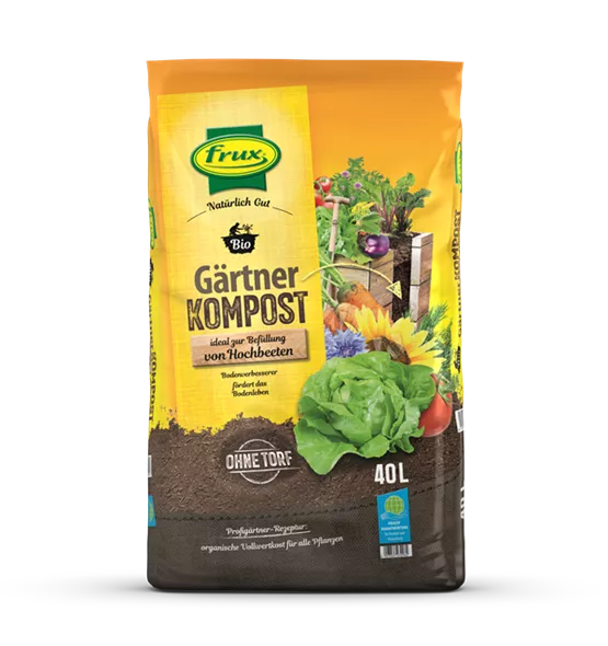 Gärtnerkompost ist universell einsetzbar zur Flächendüngung und Bodenverbesserung bei der Neuanlage von Beeten und zur Regeneration verbrauchter Böden. Er eignet sich für Pflanzen und Bäume im Nutz- und Ziergarten, darunter Obstbäume, Beerenobst, Ziergehölze sowie Gemüse und nahezu alle Blumen. Lediglich für stark zehrende Pflanzen sowie Moorbeetpflanzen wie Azaleen, Rhododendren, Eriken usw. sollten Sie Spezialerden verwenden. Gärtnerkompost können Sie auch als Vegetationsschicht in Hochbeeten nutzen. Zum Befüllen von Hochbeeten (Link zur Hochbeeterde) hat frux übrigens drei aufeinander abgestimmte Materialien.