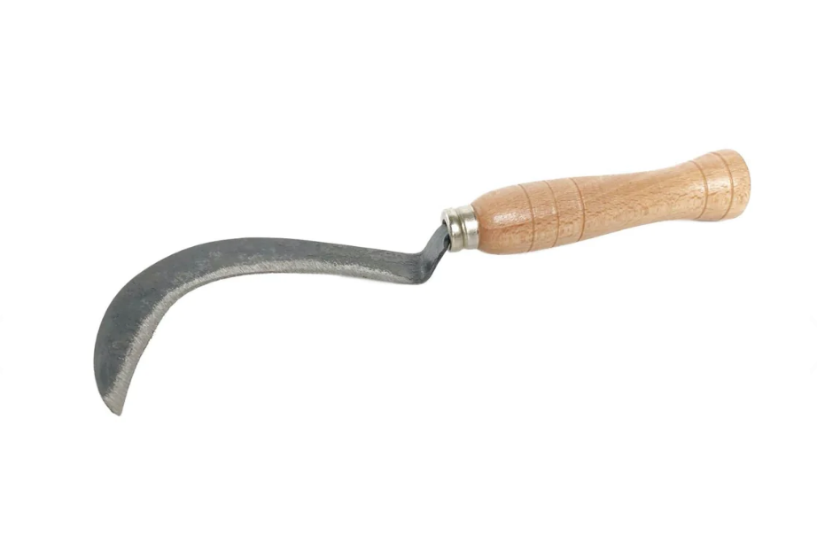 Kleine Sichel aus Karbonstahl mit Holzgriff zum