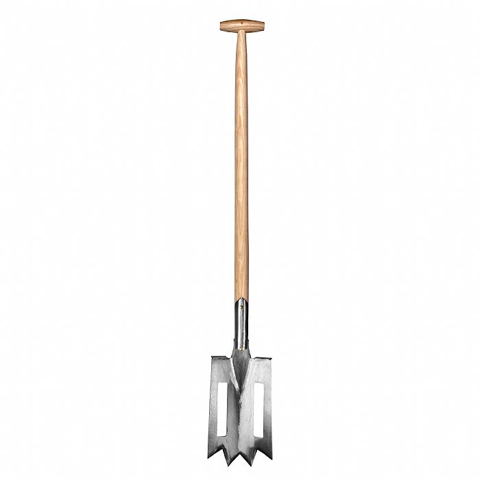 Da sich die Zacken des Spatens dem Gelände anpassen und der Spaten insgesamt flexibler ist als ein herkömmlicher, ist er auch bestens zum Ausgraben oder Kappen von starkem Wurzelwerk beim Umpflanzen von Sträuchern und Rosen geeignet.