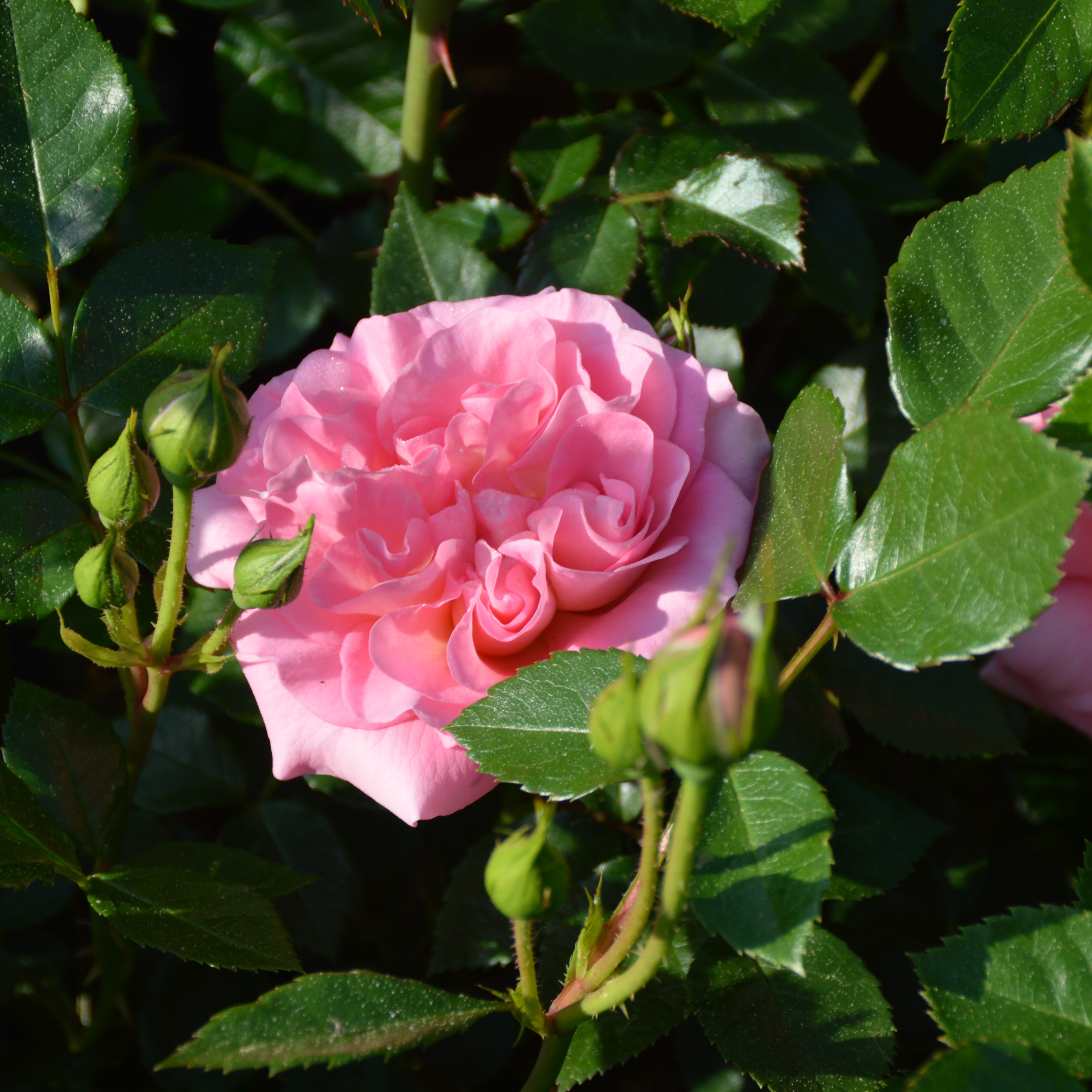 Wenn die Blüten ein paar Tage alt sind, rollen sich die Blütenblätter and den Rändern ein, sodass die Blüten ungewöhnlich sternförmig aussehen. Wer ab Mitte August Verblühtes stehen lässt, bekommt für den Herbst fröhliche Hagebutten. Die Rose ist sehr pflegeleicht und auch gut im Topf zu kultivieren. Sie blüht ausdauernd durch den ganzen Sommehindurch, ist gut winterhart und auch in Höhenlagen und für schattige Plätze geeignet